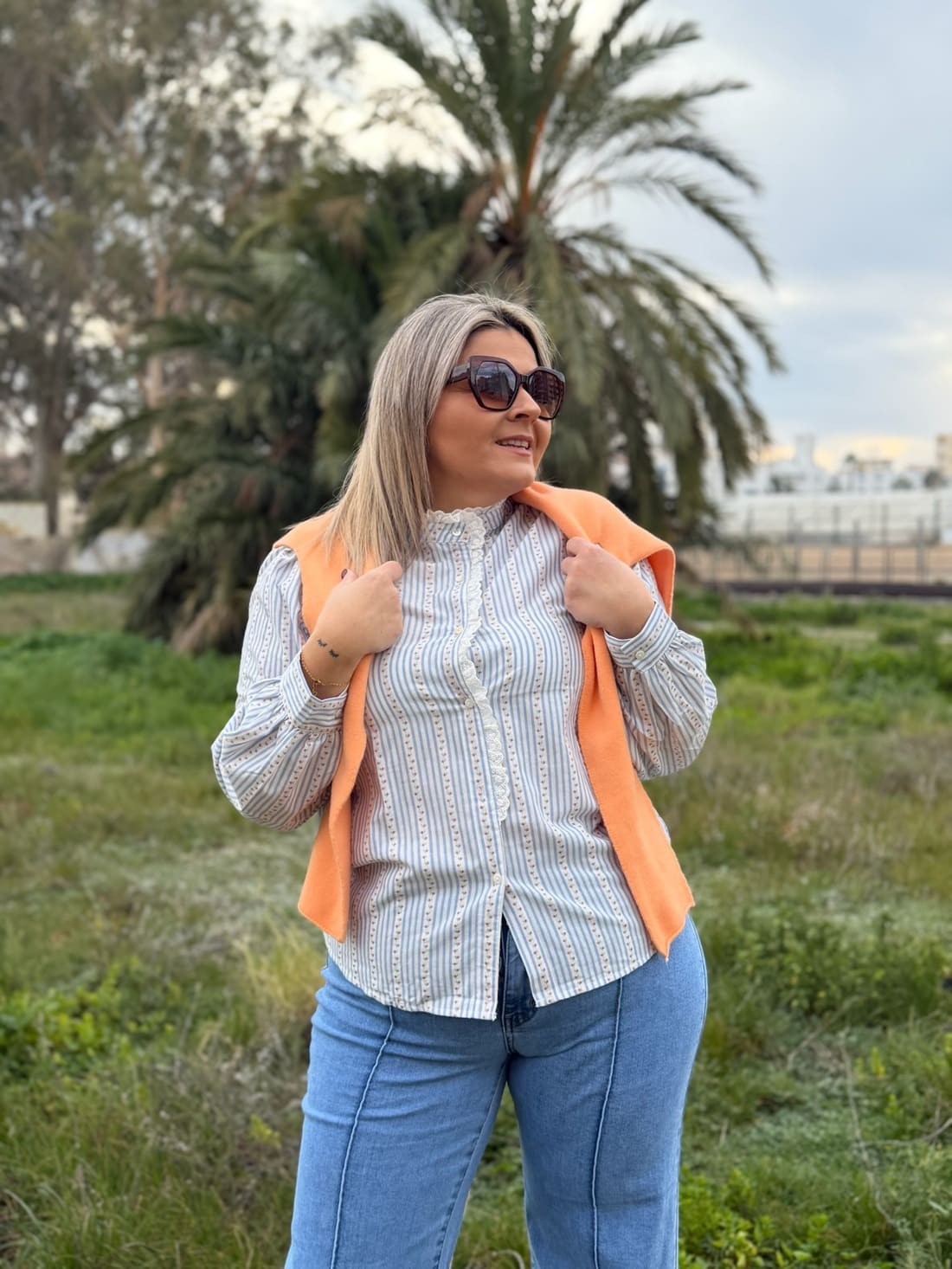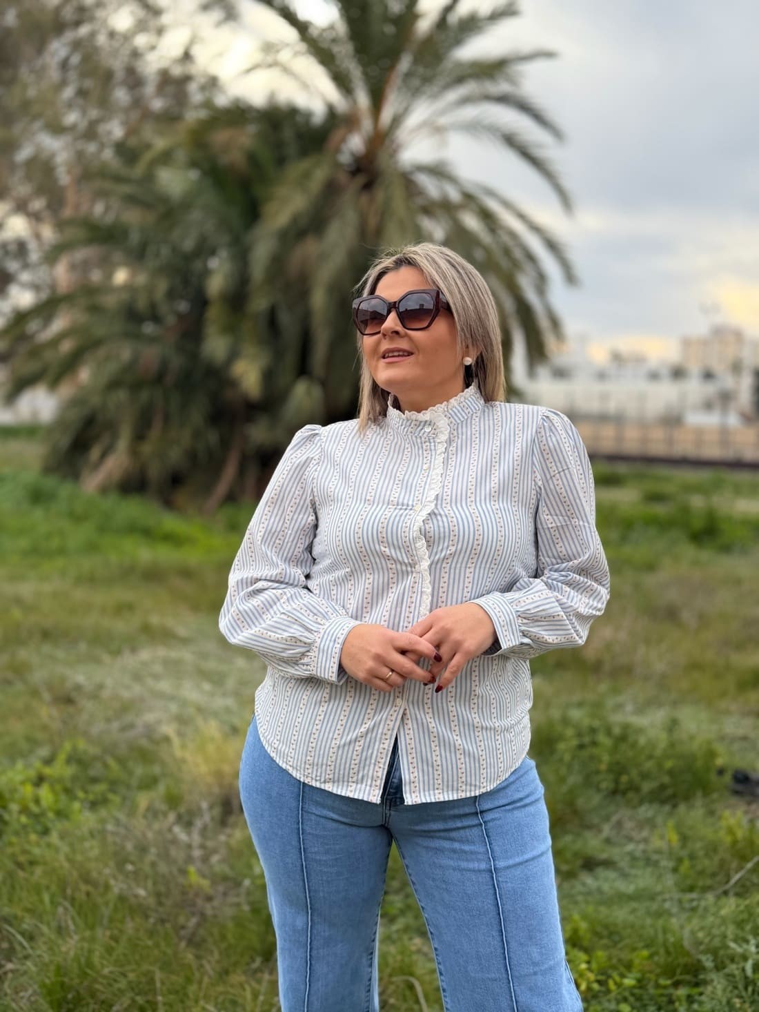 Camisa de manga larga con botones en la parte delantera desde el cuello hasta el final de esta y en los puños.