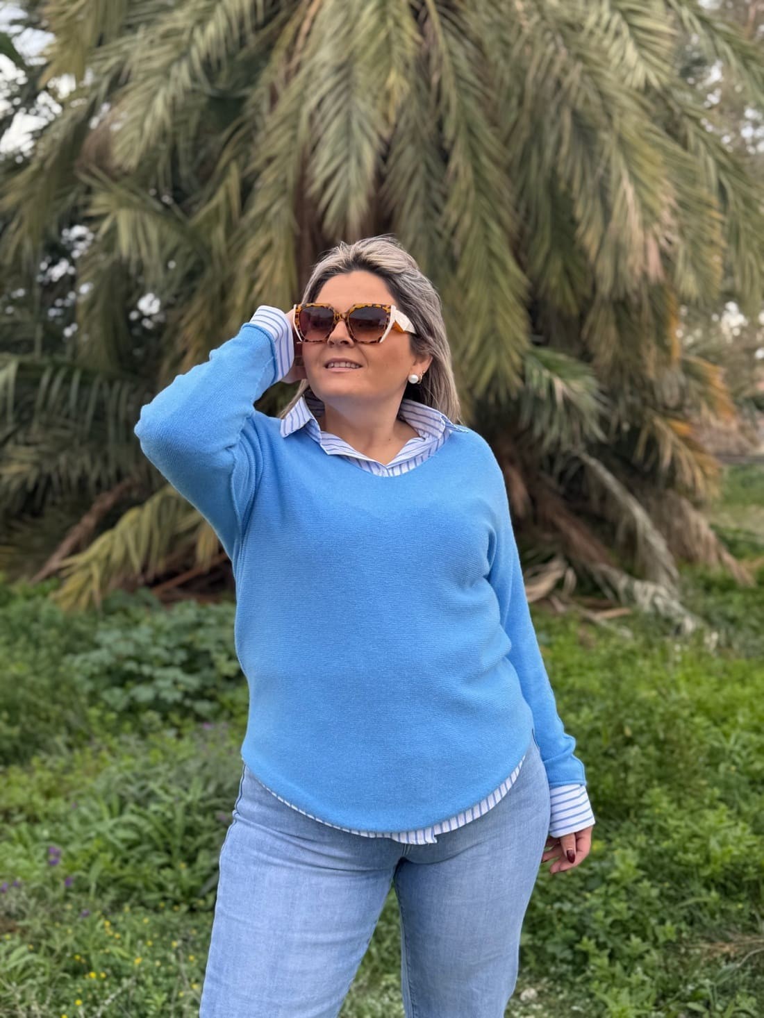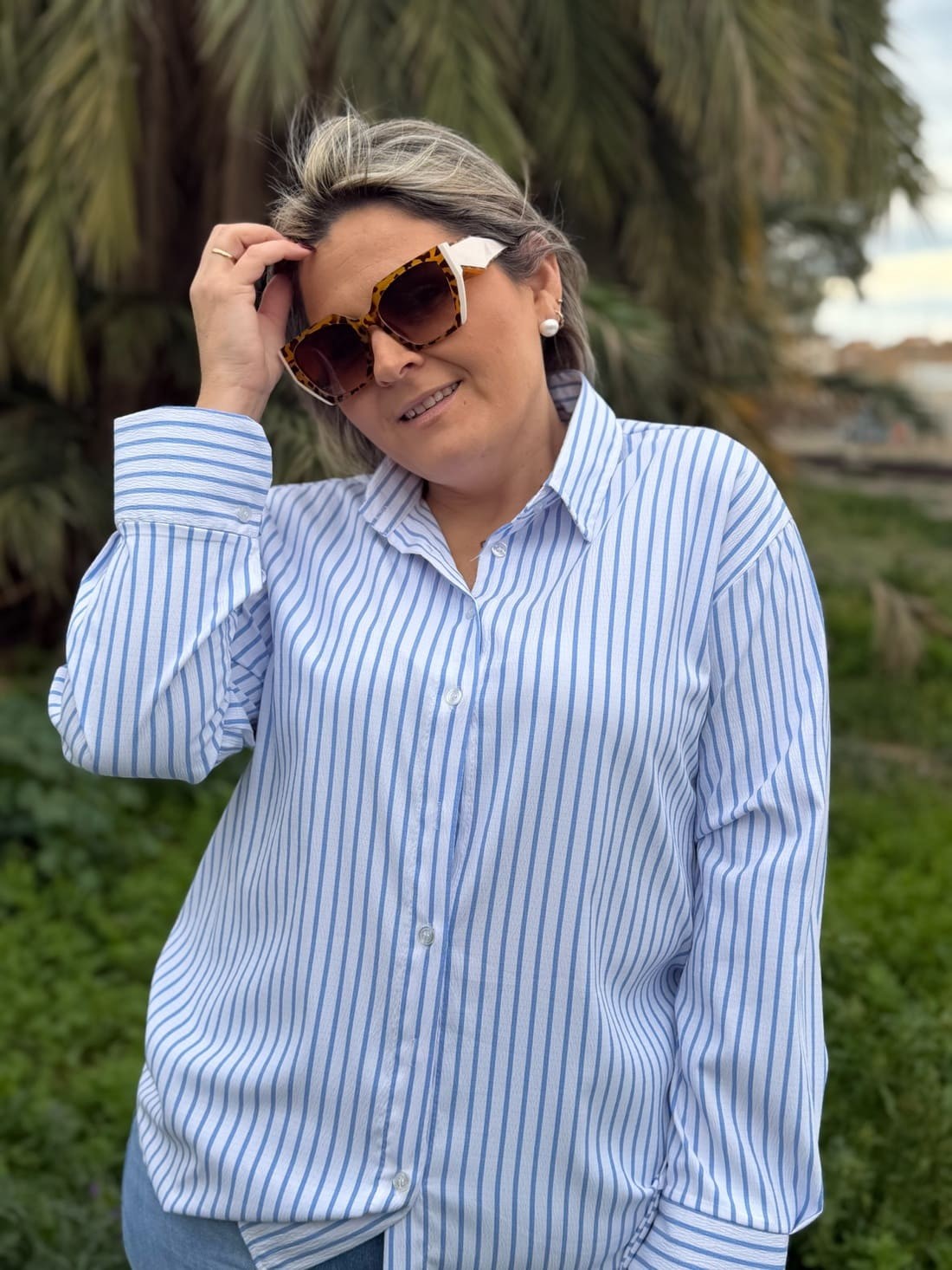 Camisa de manga larga y cuello camisero con botones en la parte delantera desde el cuello hasta el final de esta.