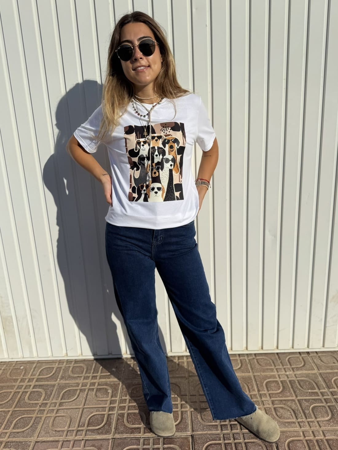 Camiseta de manga corta y cuello con detalle de dibujo en el pecho.