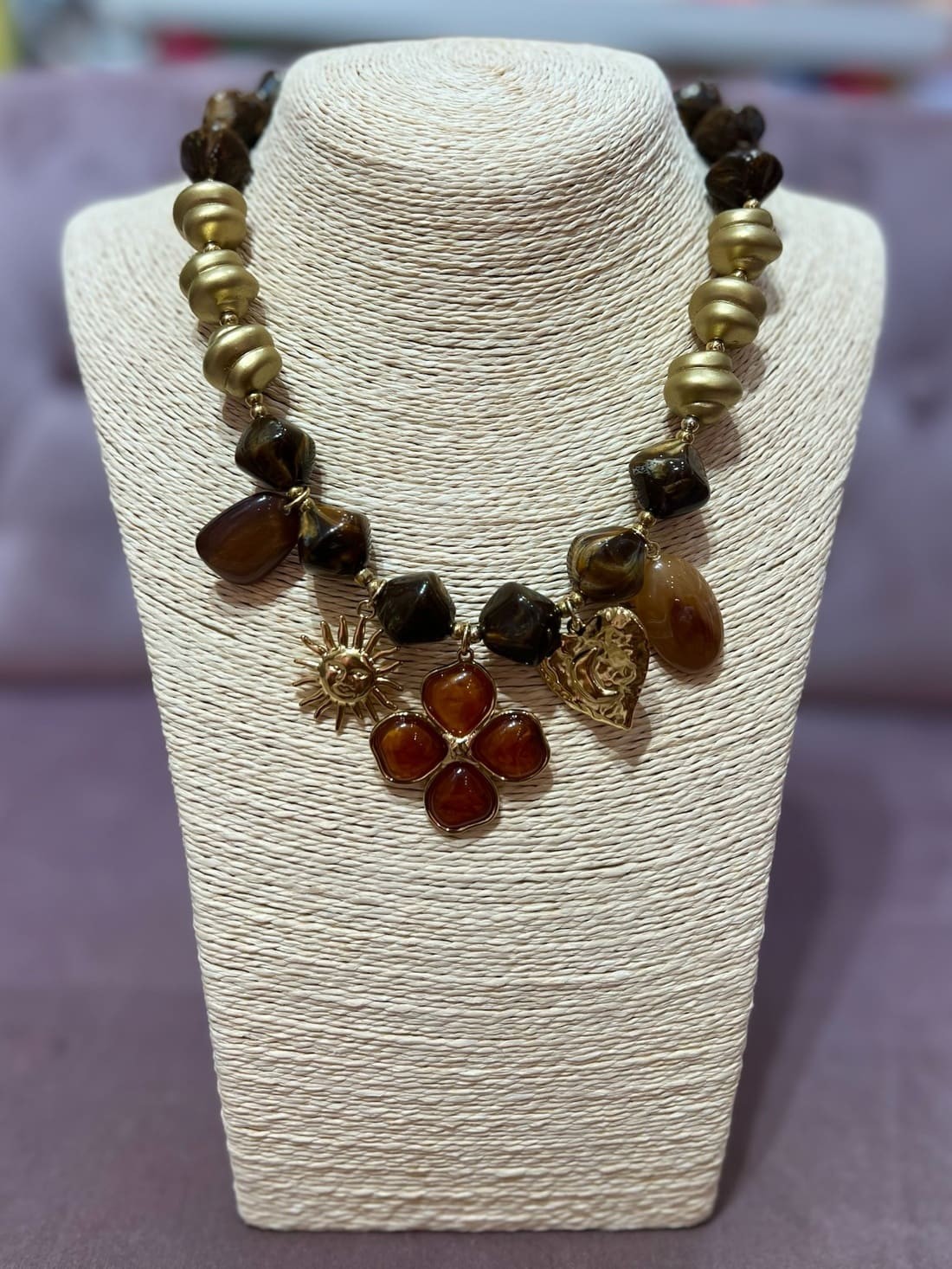 Fuera de stock Colgantes Colgante Zira COLZIRA 15,95 € Colgante con diferentes abalorios donde predomina el dorado y el plata y algún que otro color. Es corto y queda muy bonito para hacer de nuestro look un look especial. View