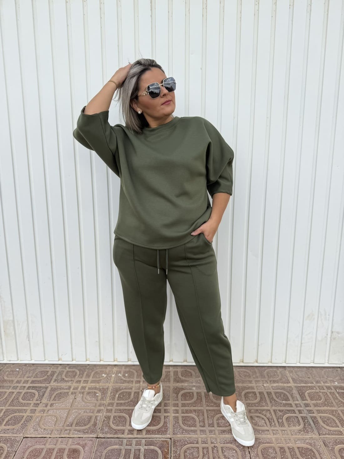 Conjunto compuesto por sudadera y pantalón en color liso de un género muy agradable y gustoso.