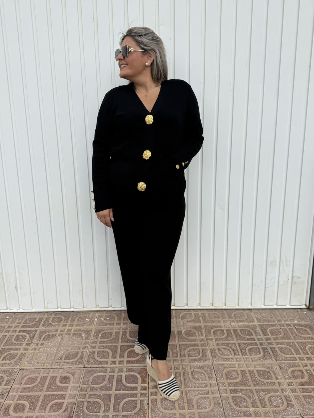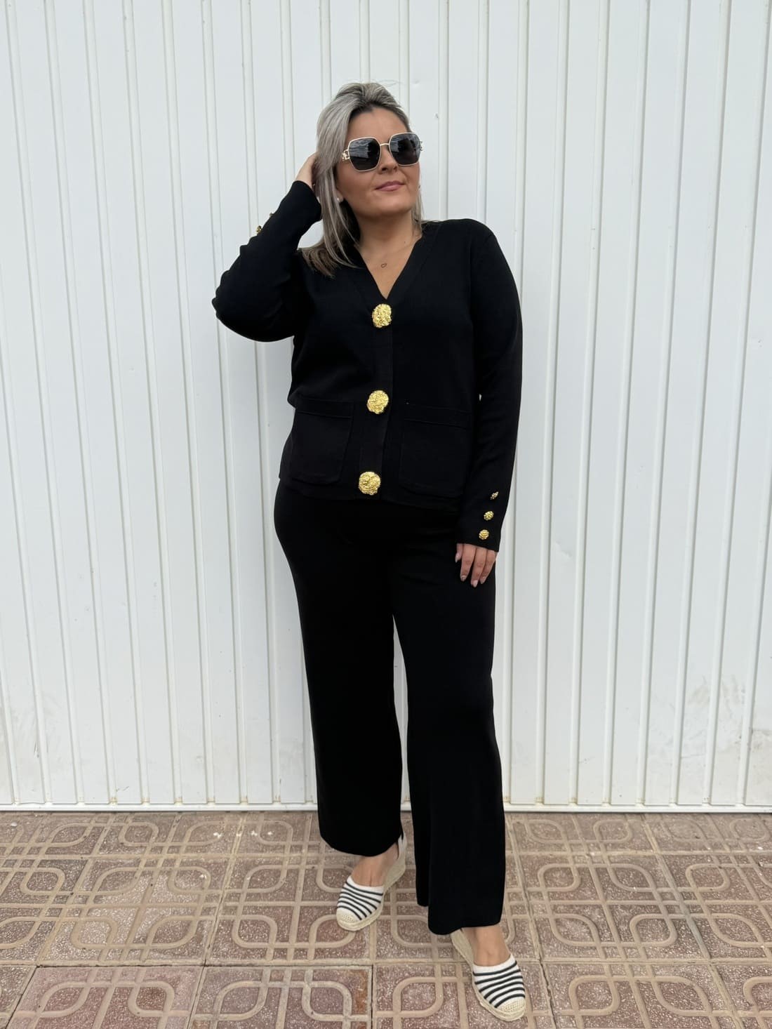 Conjunto muy bonito y elegante compuesto por pantalón y jersey en color liso de un género de punto muy agradable.