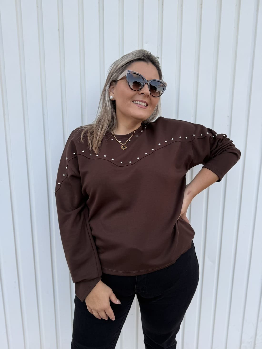 Sudadera de manga larga y cuello redondo estilo oversize que queda muy bonita y puede dar un toque elegante a tu look.