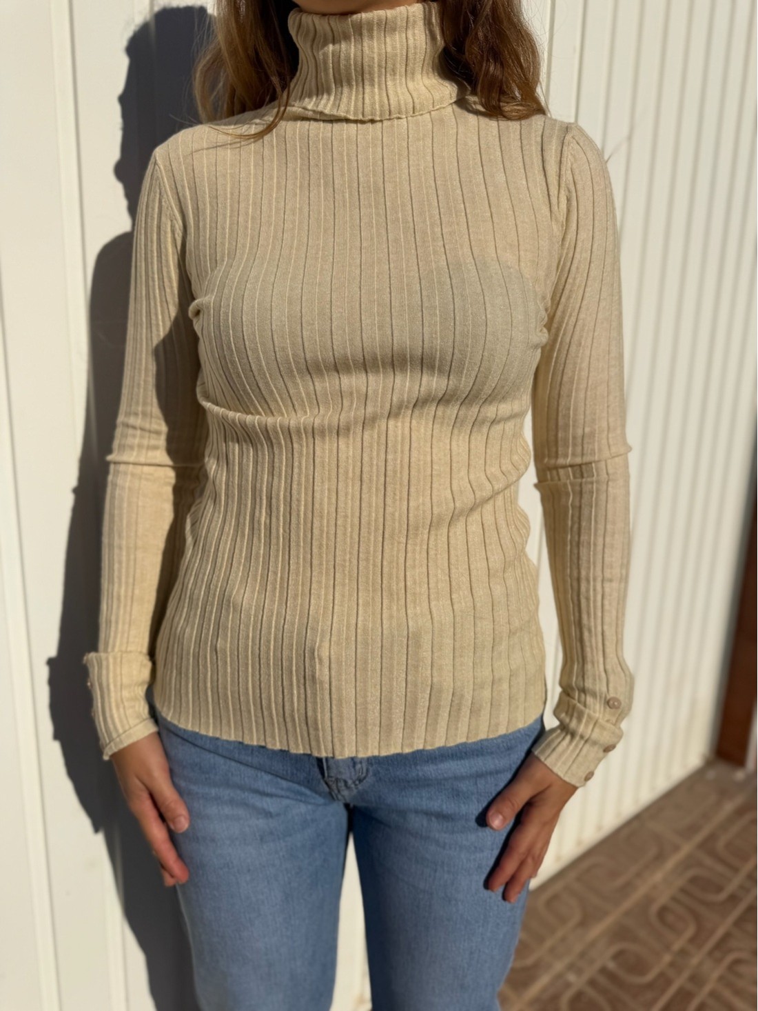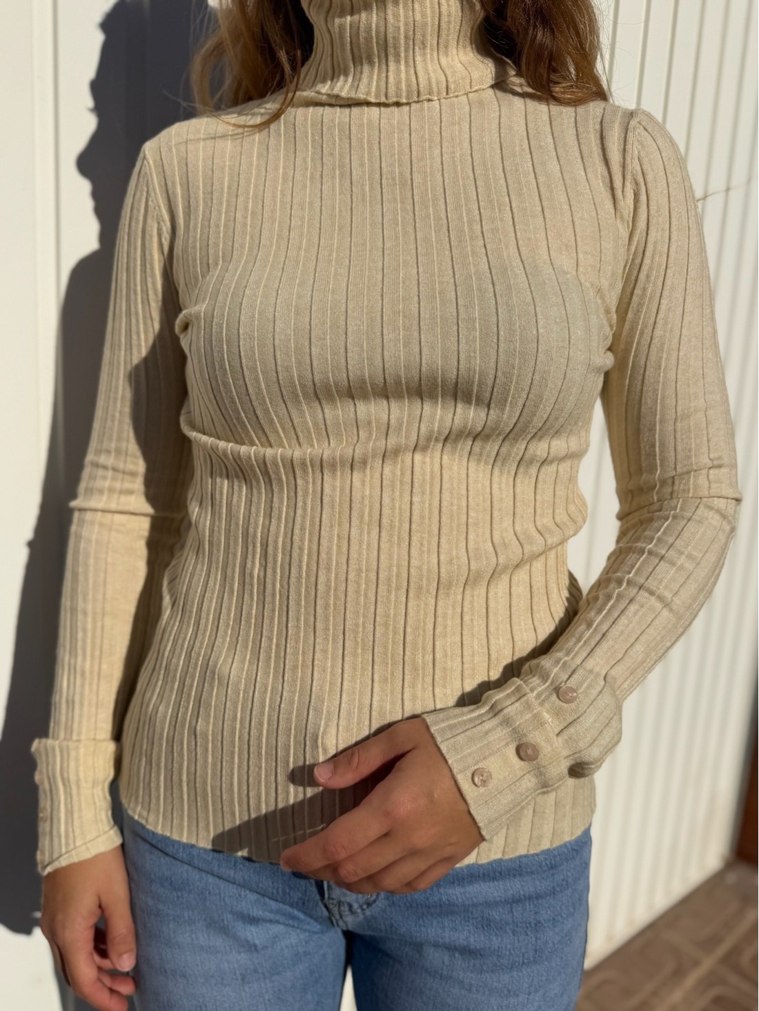 Suéter de manga larga de canalé gordito. Es de un punto fino muy agradable que os encantará.