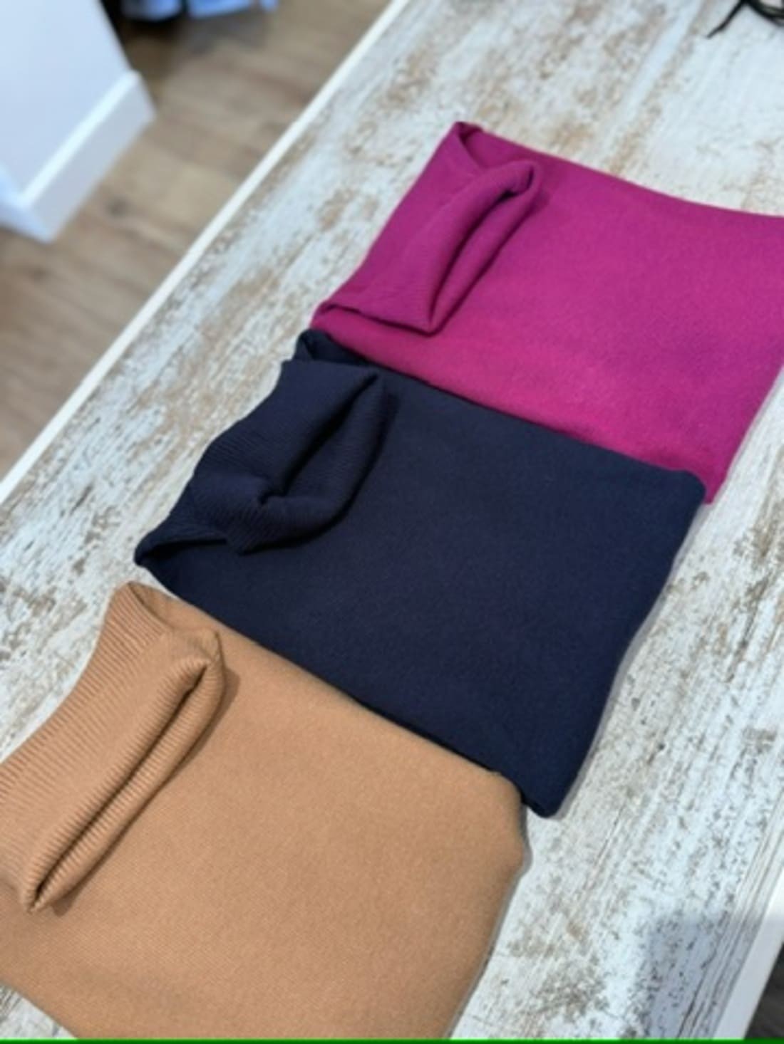 Jersey básico de cuello alto de color liso que tiene un género muy agradable.