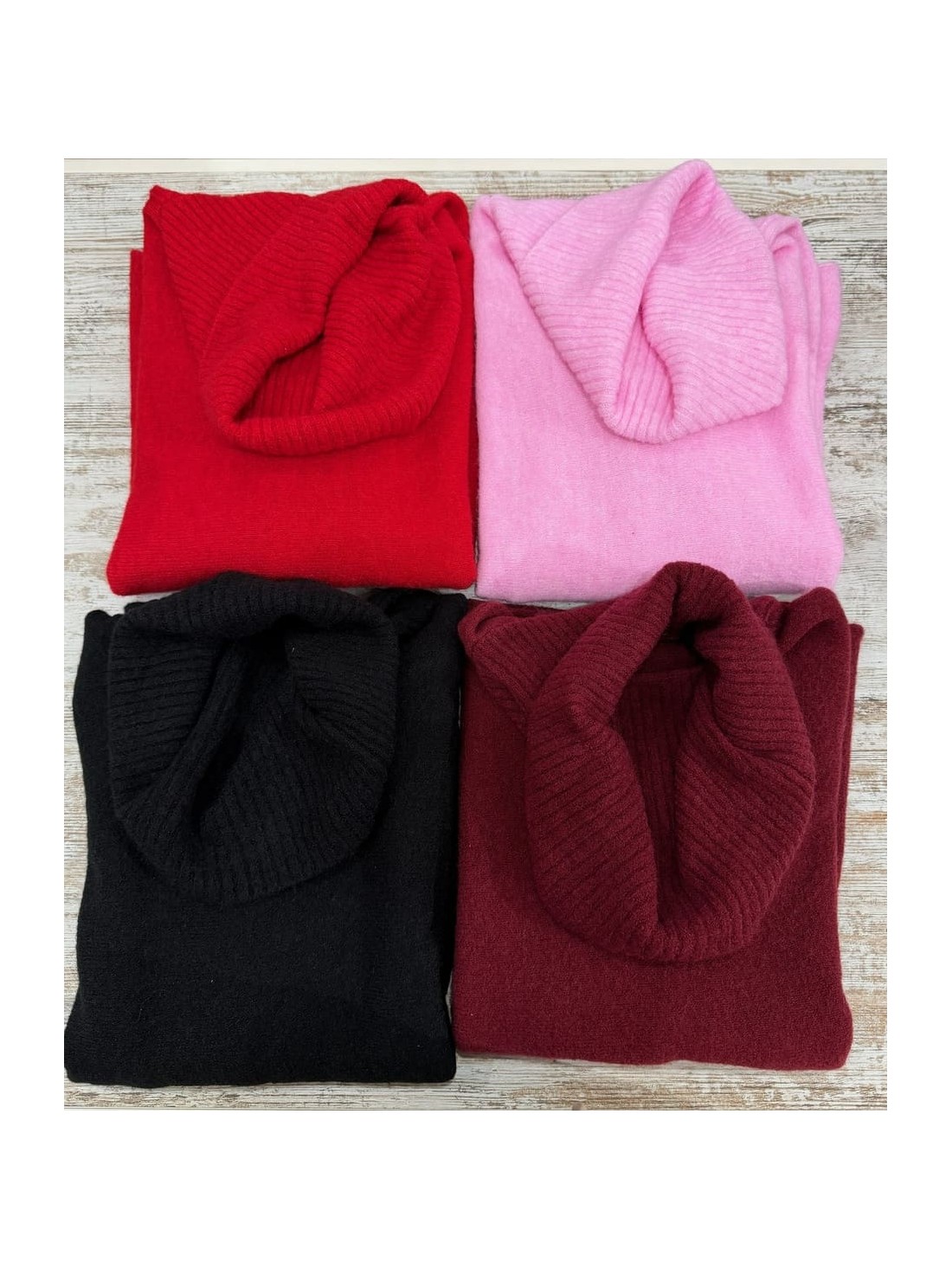 Jersey gordito muy calentito de cuello alto caído, lo que hace que no agobie. Es larguito, por la cadera.
