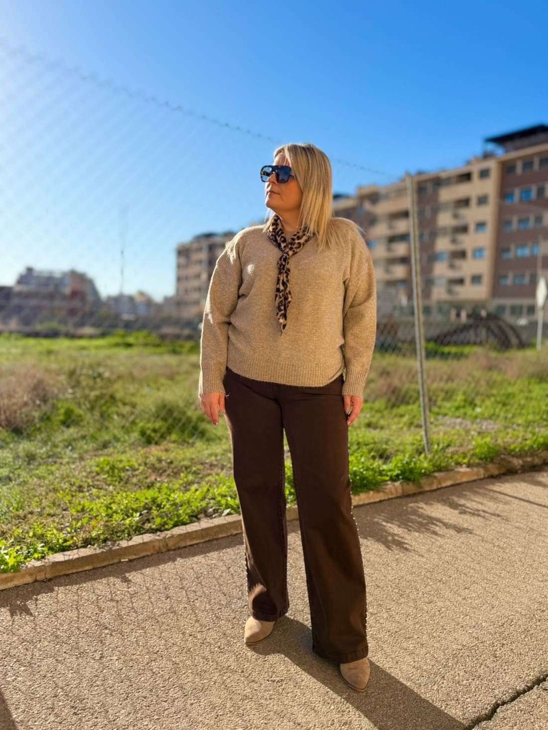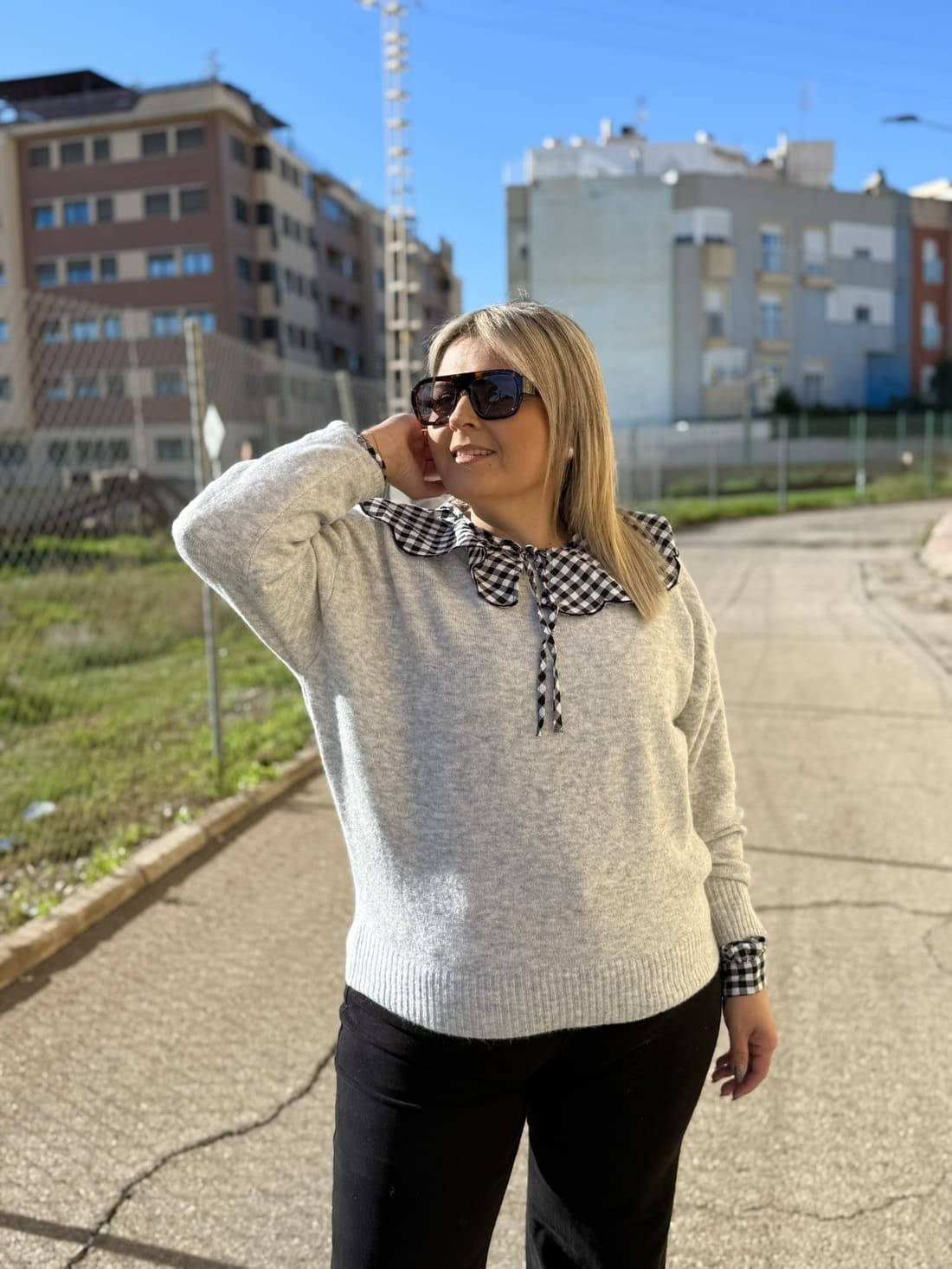 Jersey sencillo de manga larga y cuello redondo. Es muy calentito y de un género muy agradable.