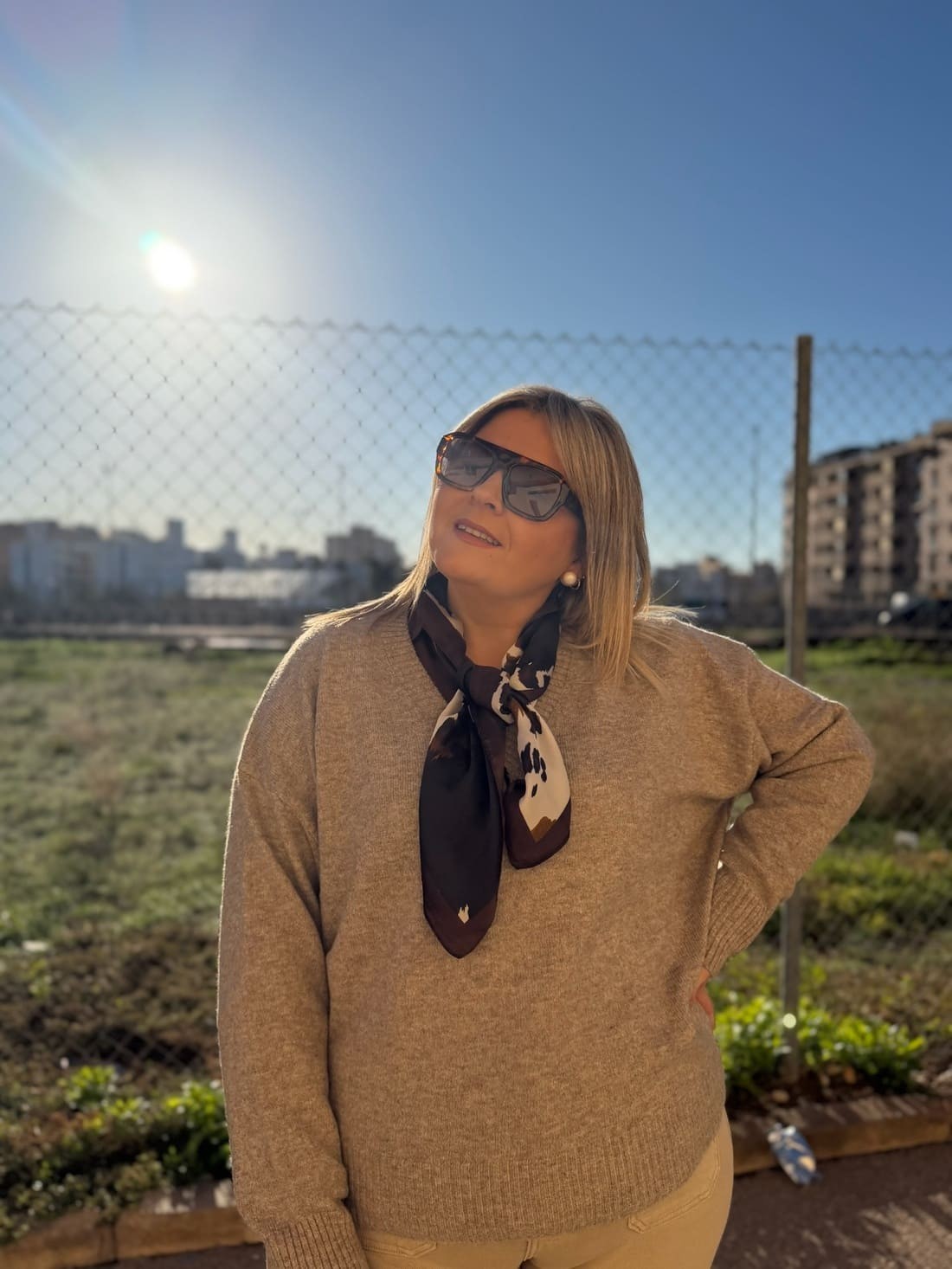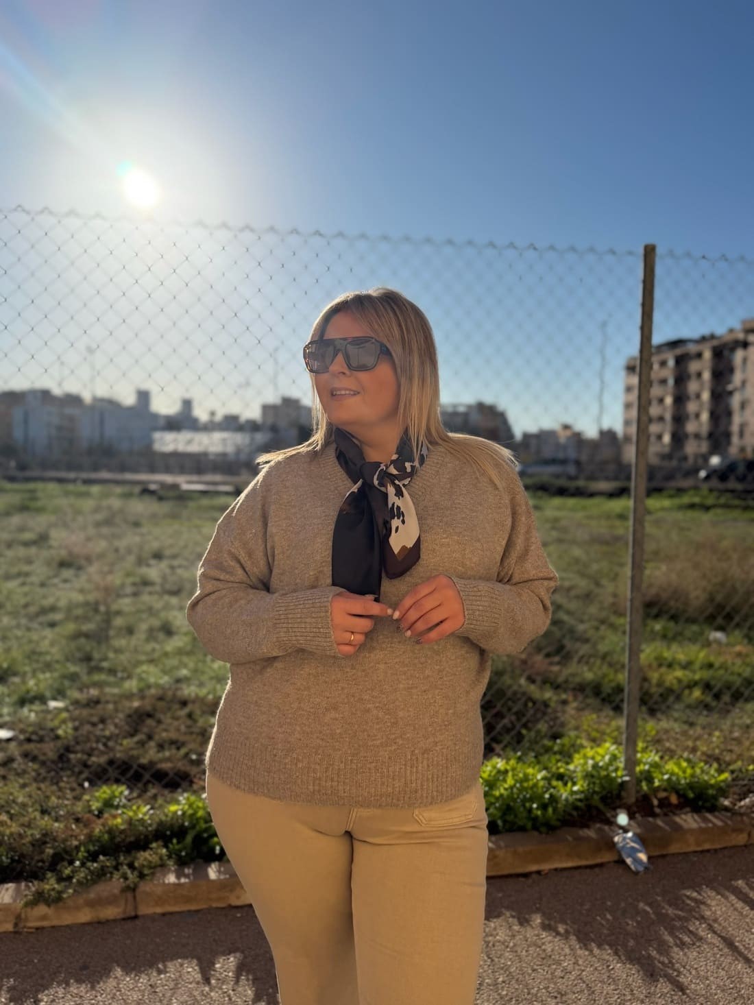 Jersey sencillo de manga larga y cuello redondo. Es muy calentito y de un género muy agradable.