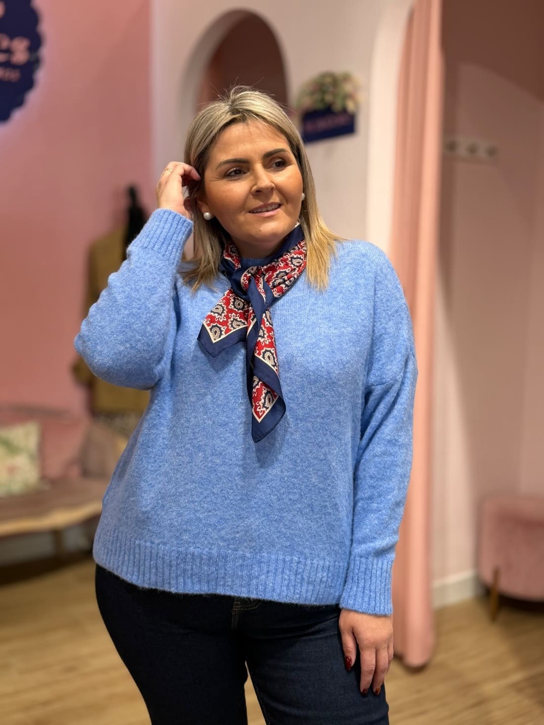 Nuevo Jersey Jersey Borlas Flecos N5130 18,95 € + 5 colores Jersey de manga larga y cuello redondo con detalle de medias bolitas en relieve en la parte delantera del pecho. Tiene flecos en forma de pico justo debajo de las bolitas y la parte de abajo va haciendo trenzados y rombos. El resto es lisa. Va por tallas, M-L y L-XL. 74% Acrílico 22% poliéster 4% elastan Añadir al carrito