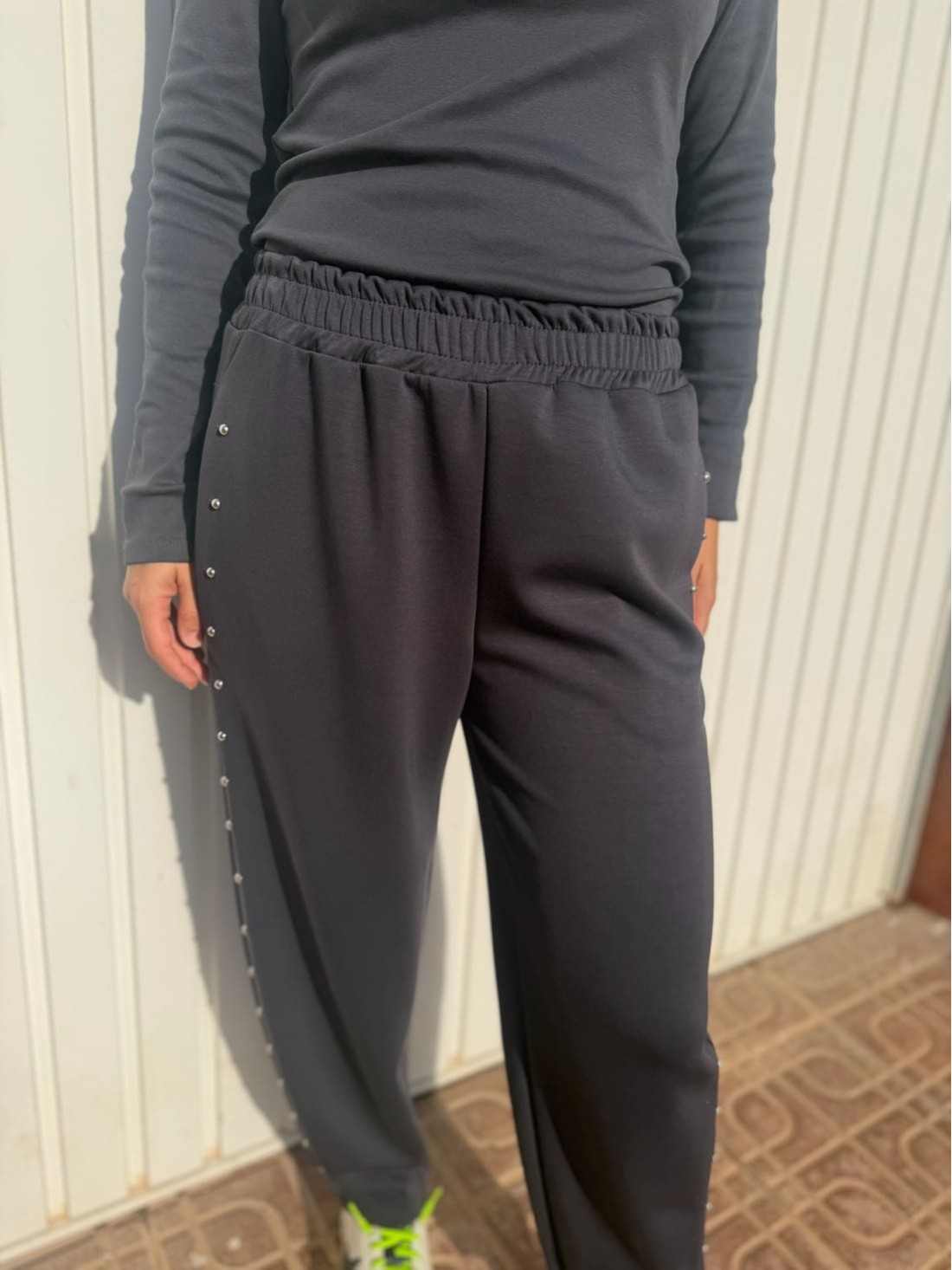 Pantalón Chándal Tachuelas Gris