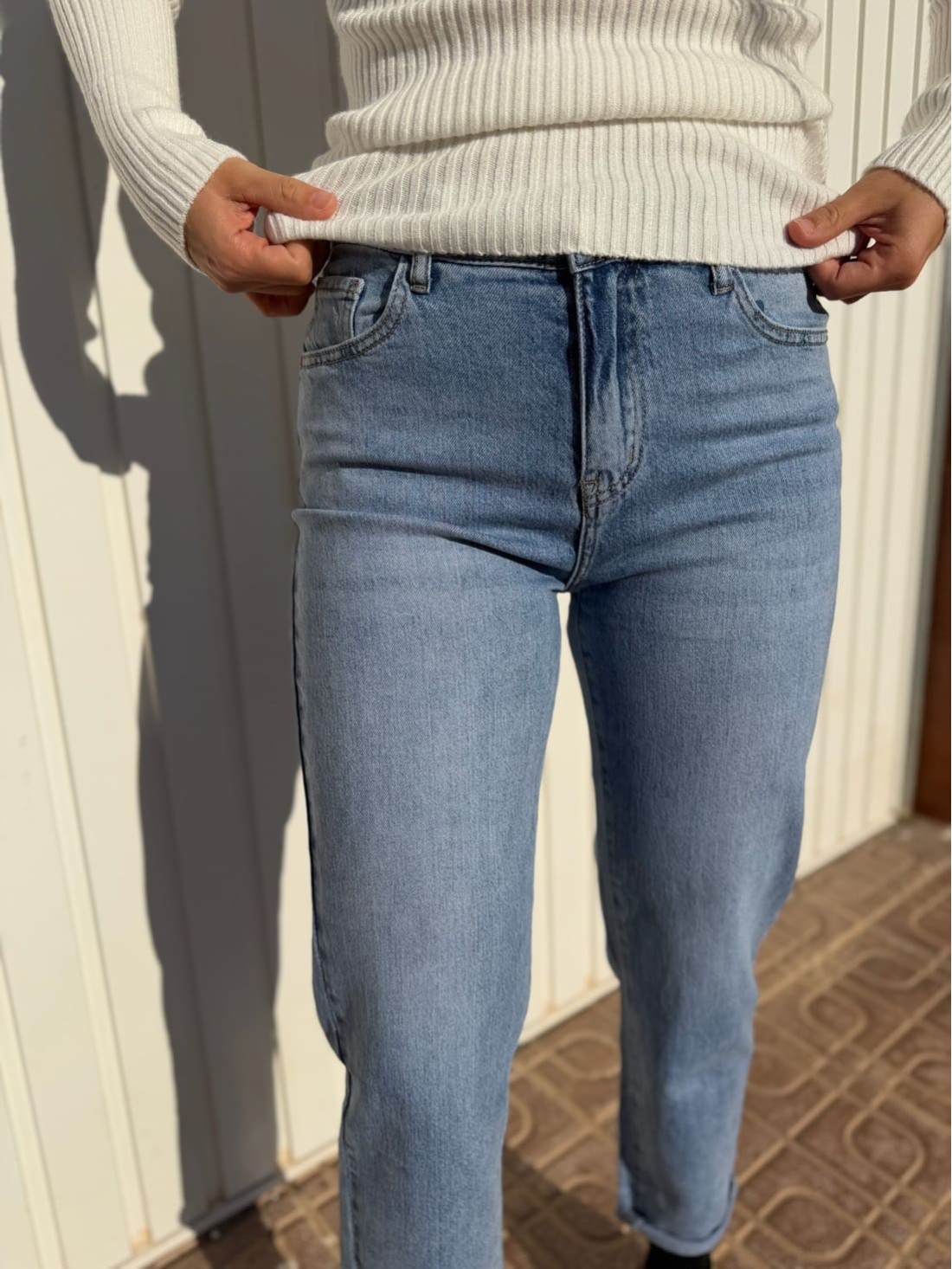 Es un pantalón vaquero claro que es muy fácil de combinar.
