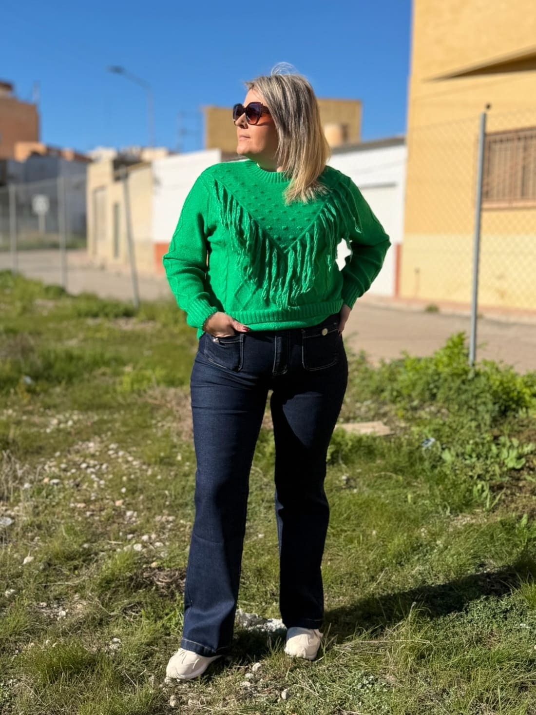 Pantalón vaquero recto de tiro alto que sienta super bien.
