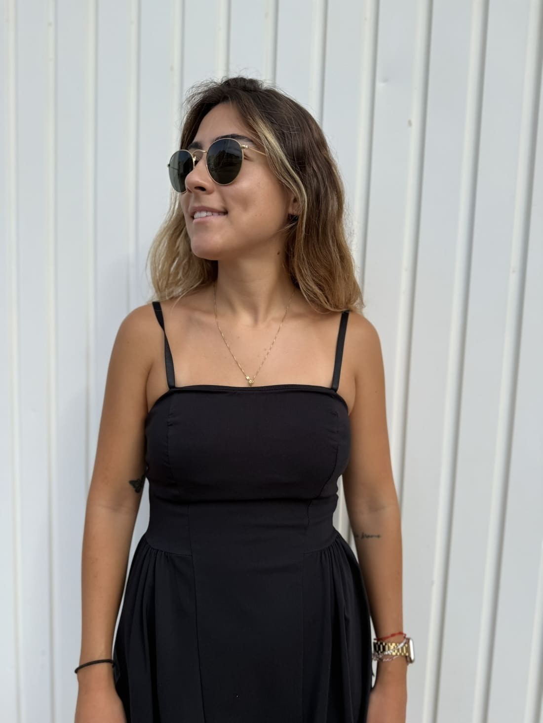Vestido corto de tirantes finos regulables. Es de color liso.