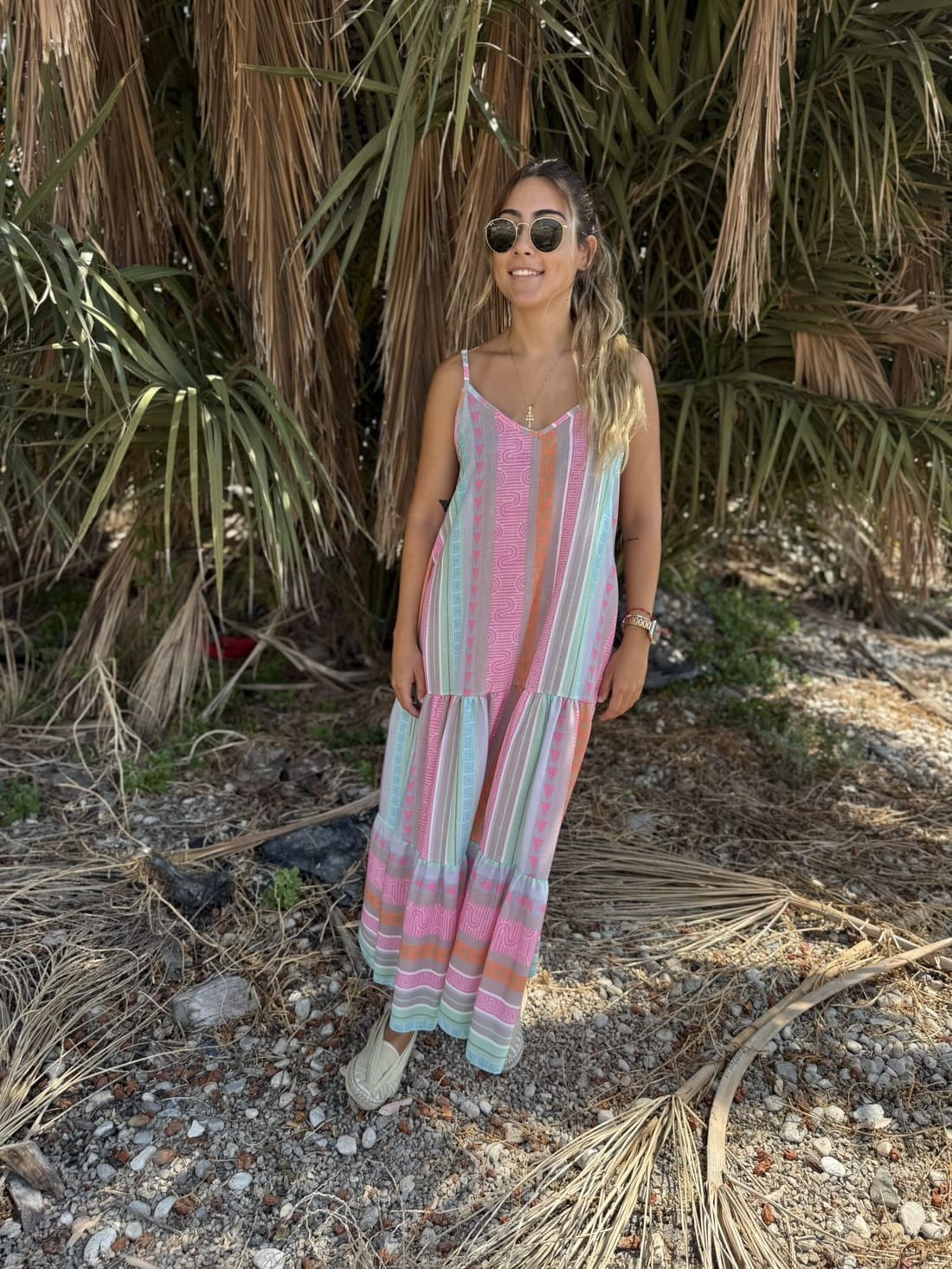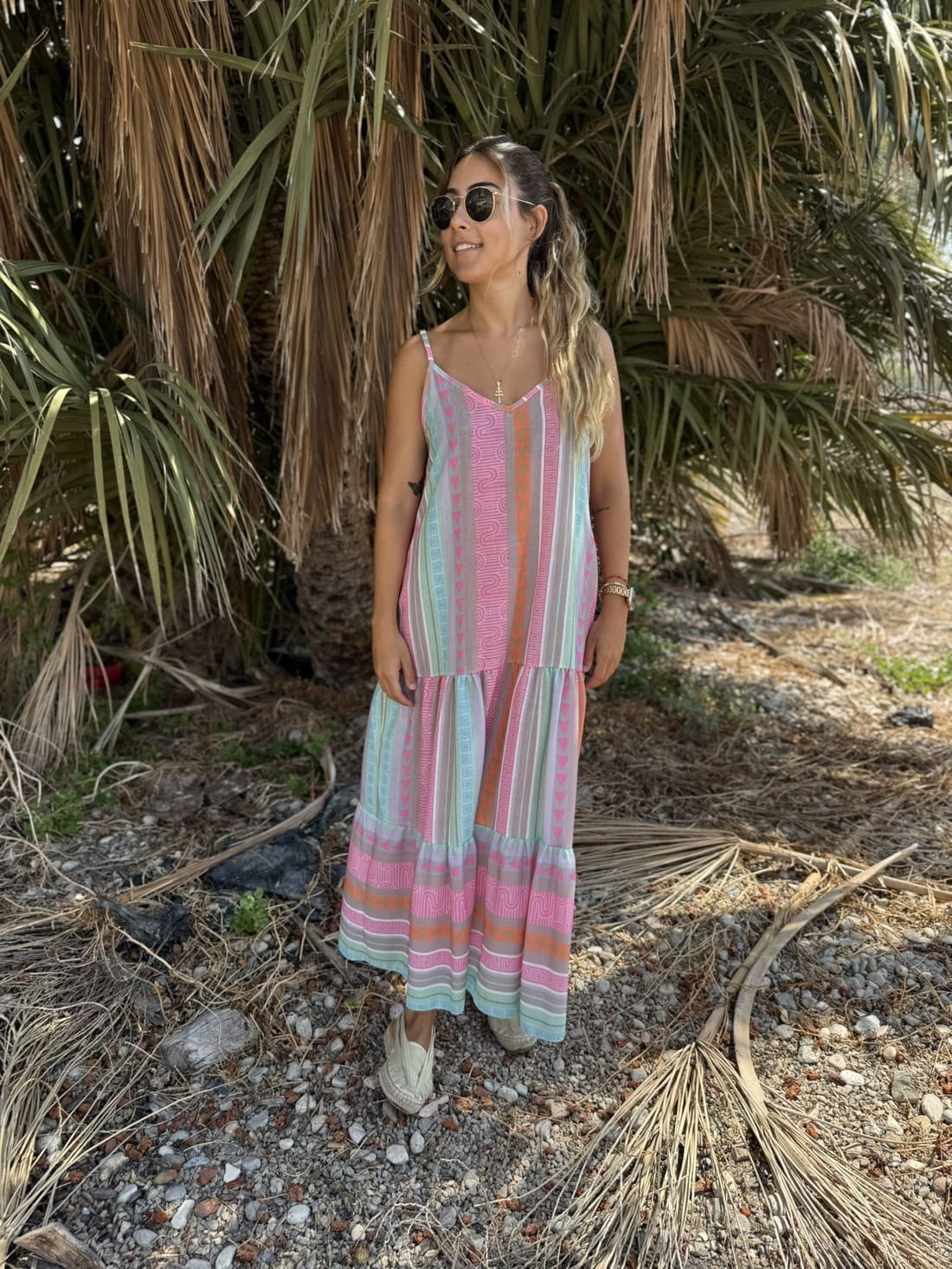 Vestido estampado de tirantes y espalda engomada. Su estampado es muy bonito en diferentes dibujos y colores.