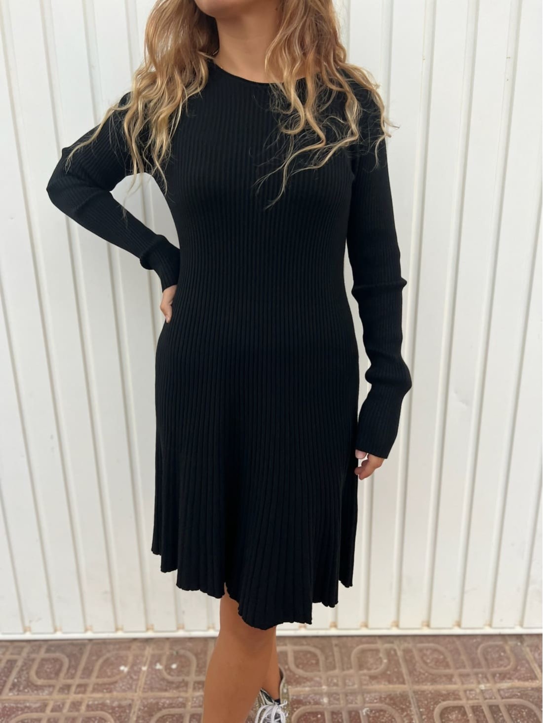 Vestido corto básico de manga larga y cuello redondo de canalé.